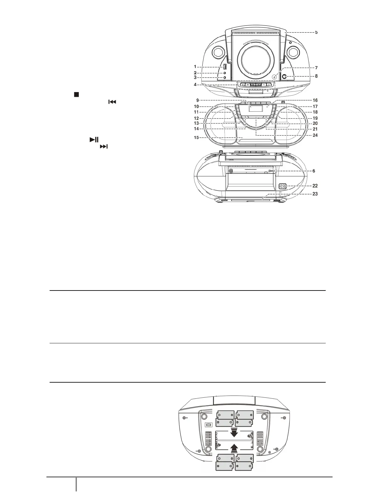 For DC operation, please insert 8 pcs size C (UM-2) battery to batter compartment (23) and remove the AC plug from