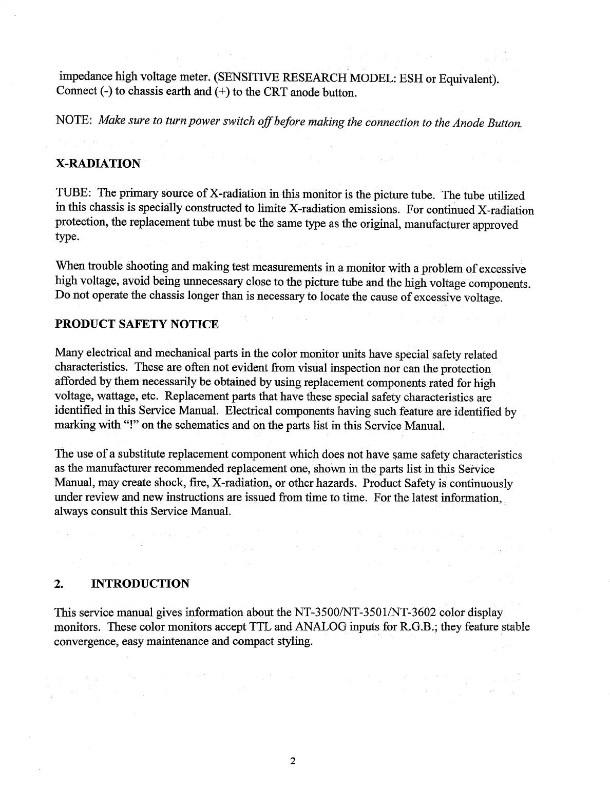 This service manual gives information about the NT-3500/NT-3501/NT-3602 color display
