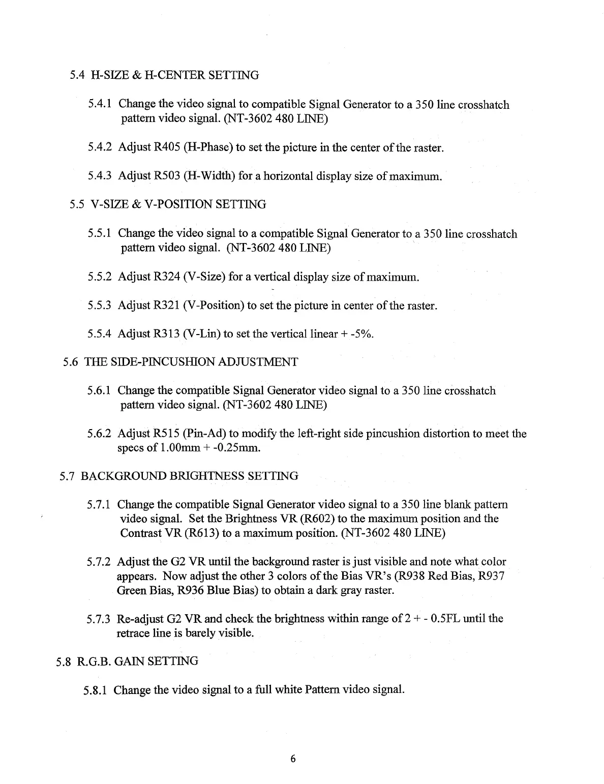 5.7.1 Change the compatible Signal Generator video signal to a 350 line blank pattern