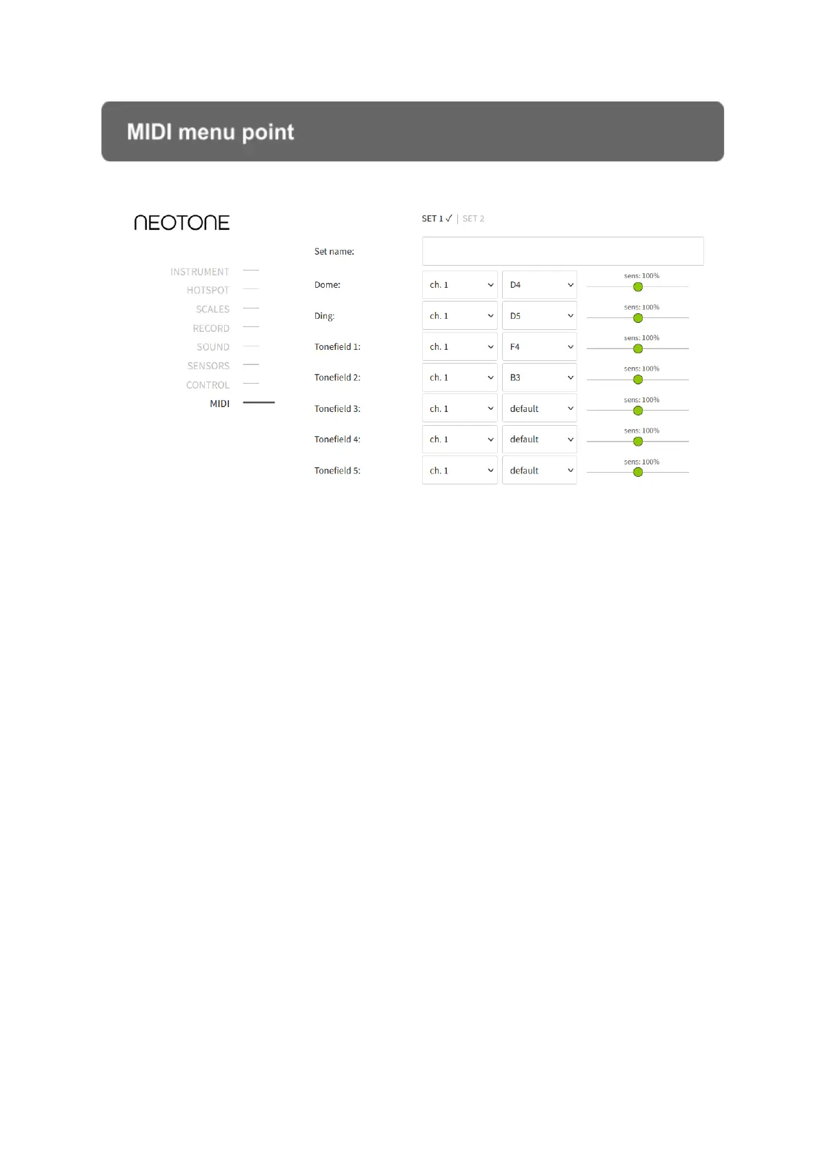 All fields’ initial setting is empty which means the instrument won’t send any midi