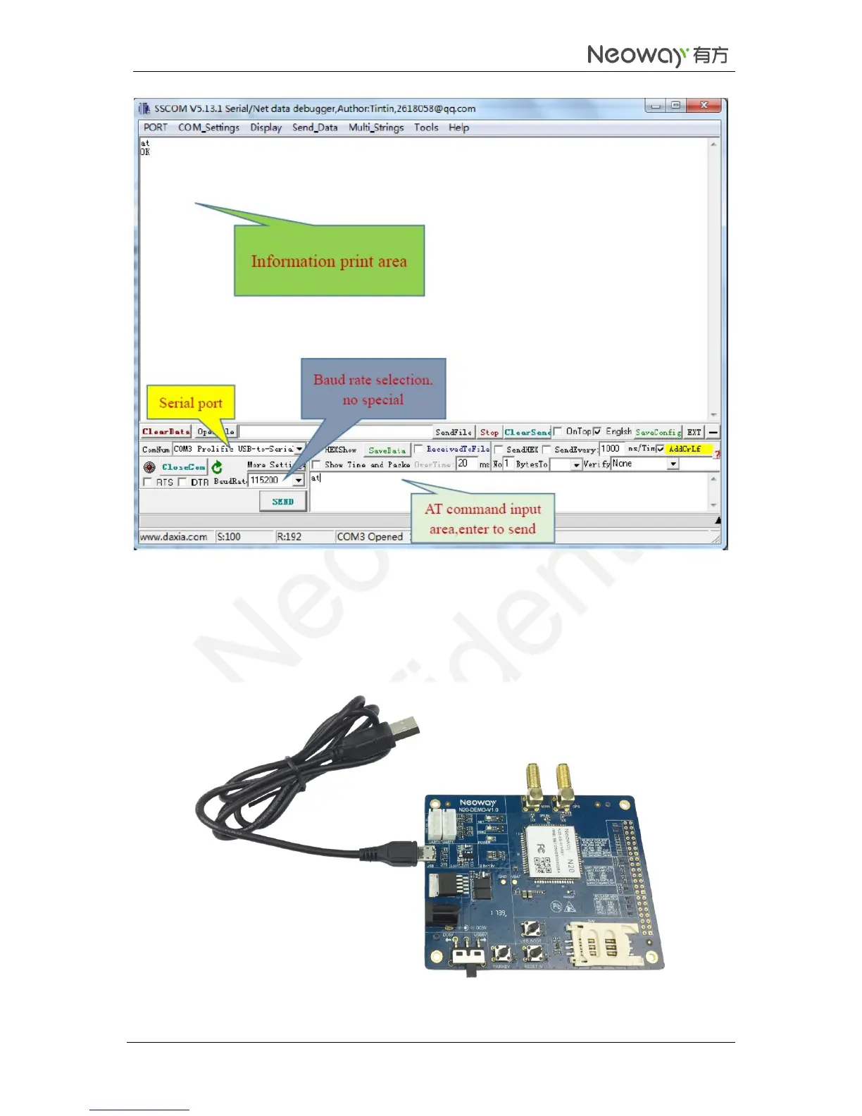 Step 1 Connect the module to a computer though the USB and power on the module.