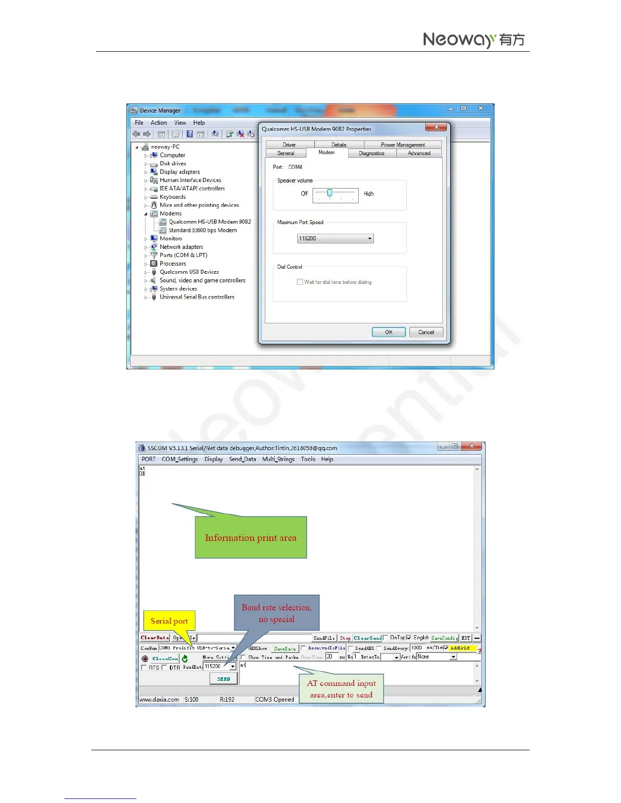 For details about AT commands, see Neoway_N20_AT_Command_Mannual.