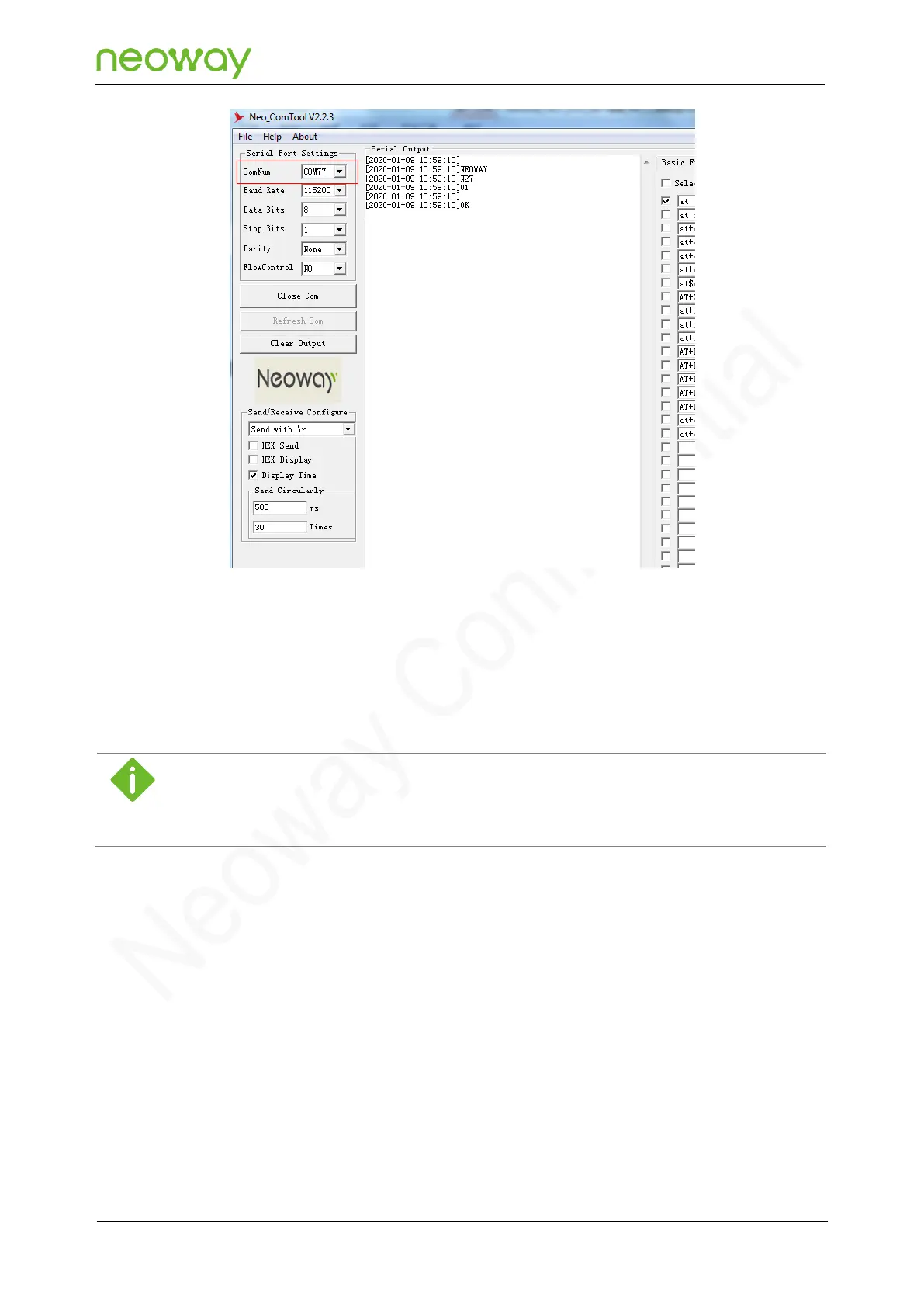 Step 4: Send an AT command to enable the module to detect the baud rate automatically.