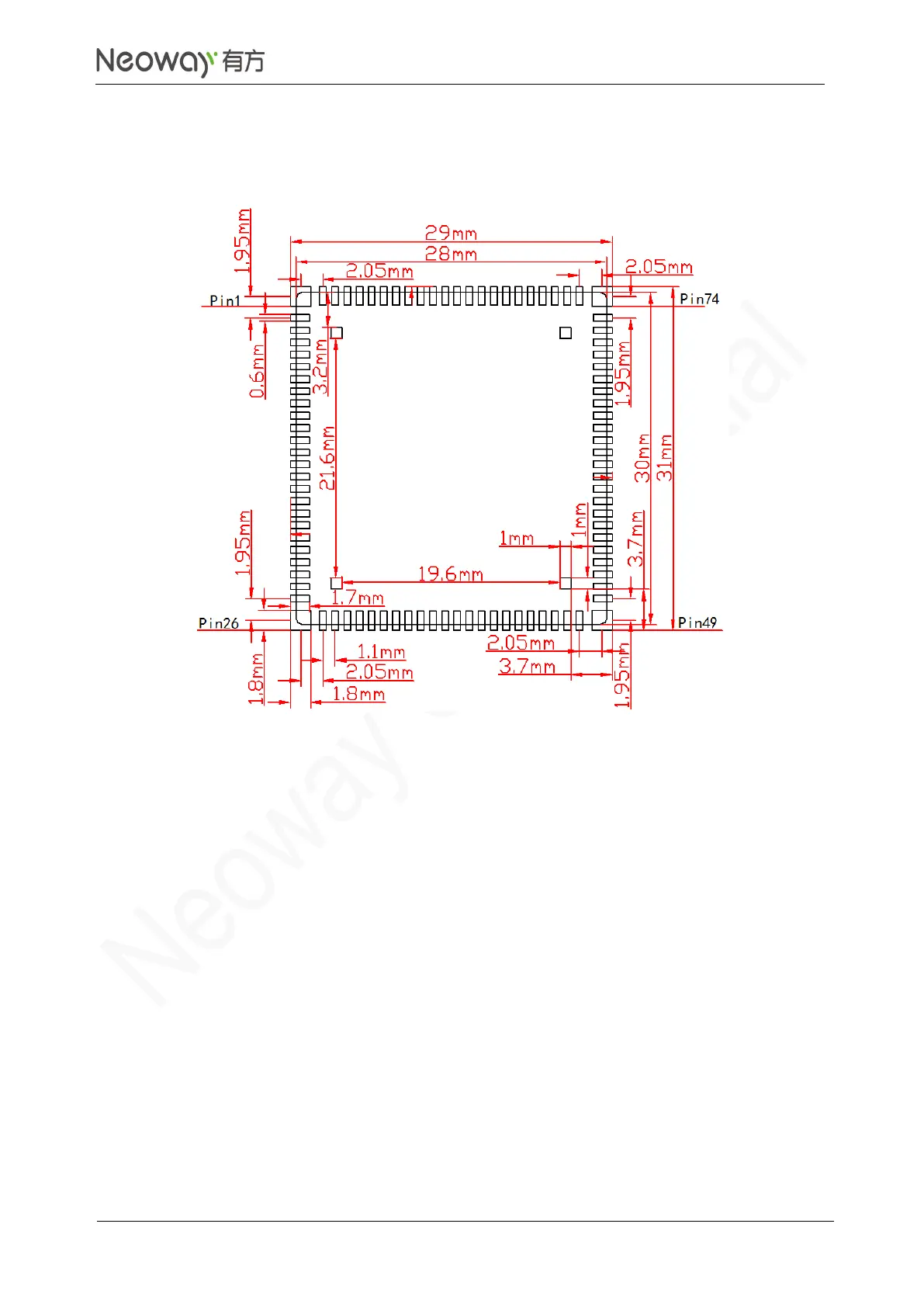 Figure 7-2 Recommended Application Foot Print (Top View)