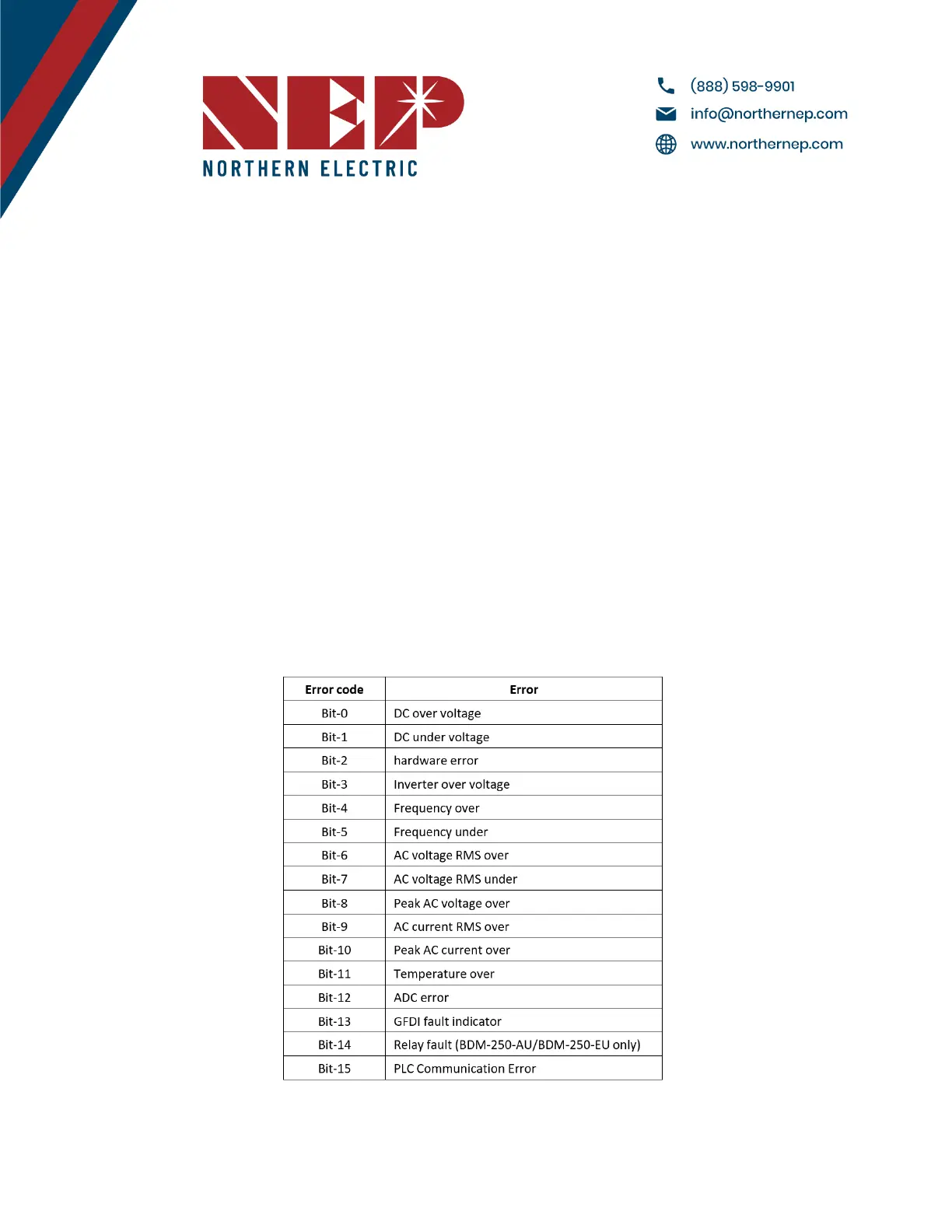 line communication, and the gateway will display an error message in the form of a 16-bit error code.