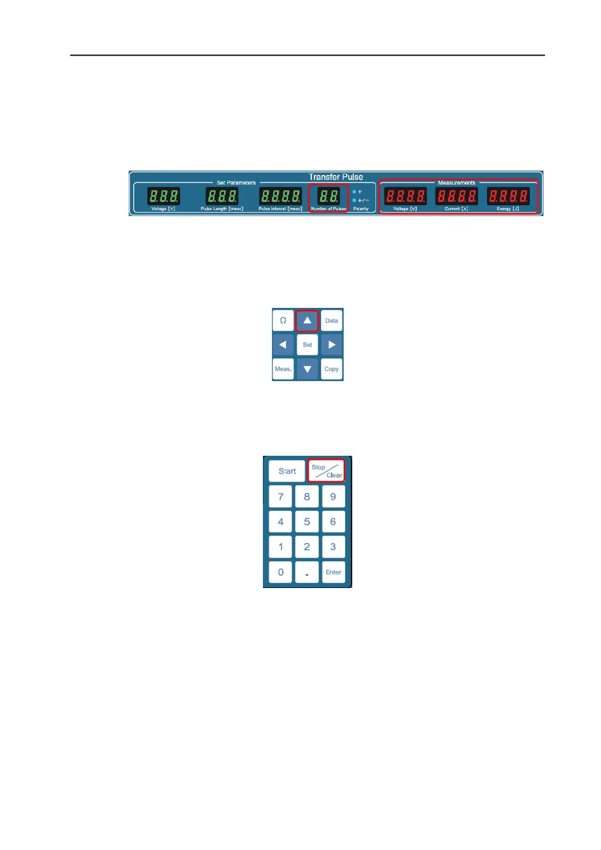 The values in the Measurements frame in the Transfer Pulse window will blink. The blinking values