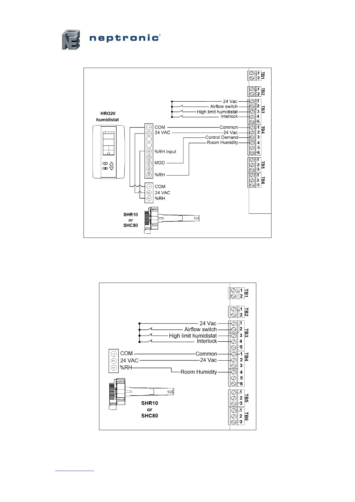 Humidity controlled externally, using HRO20 humidistat with SHR10 or SHC80 as space sensor:
