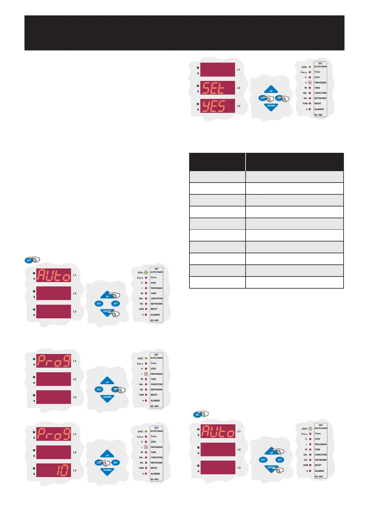 single phase capacitor steps can be set by user. In Auto setup mode