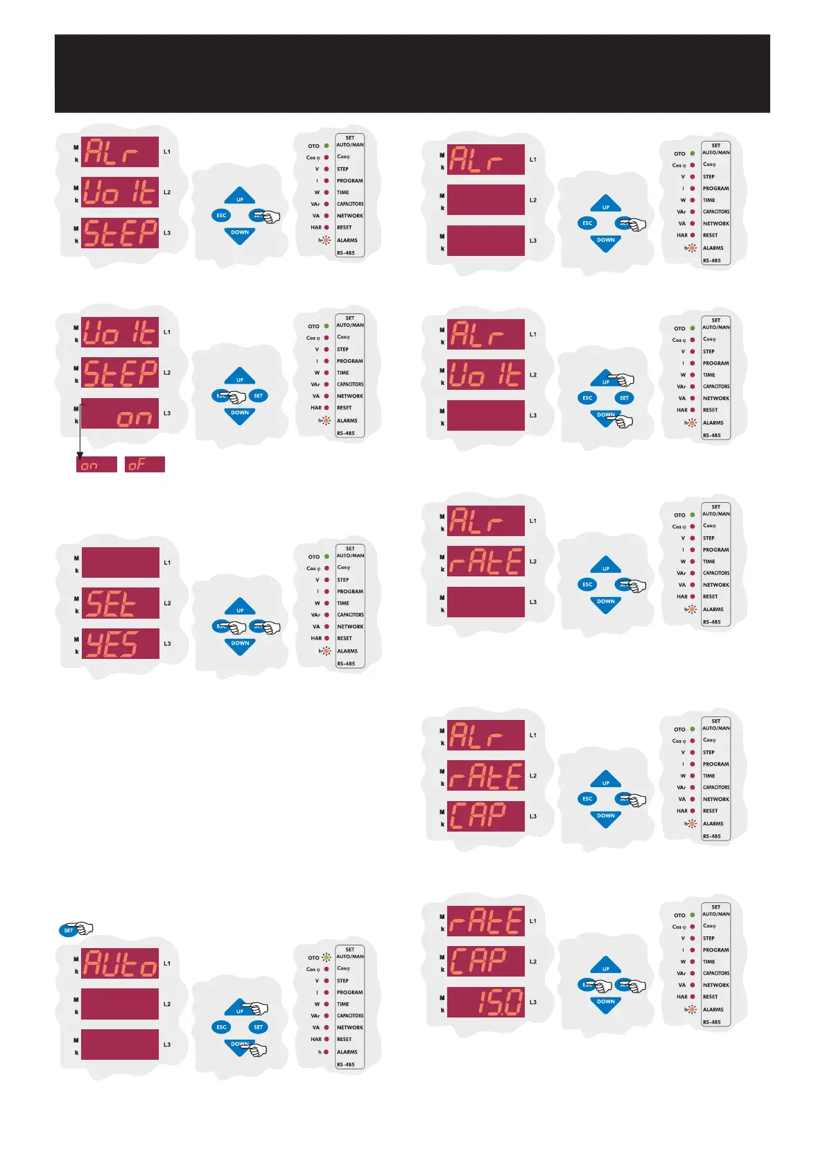 Press SET button for capacitor step settings.