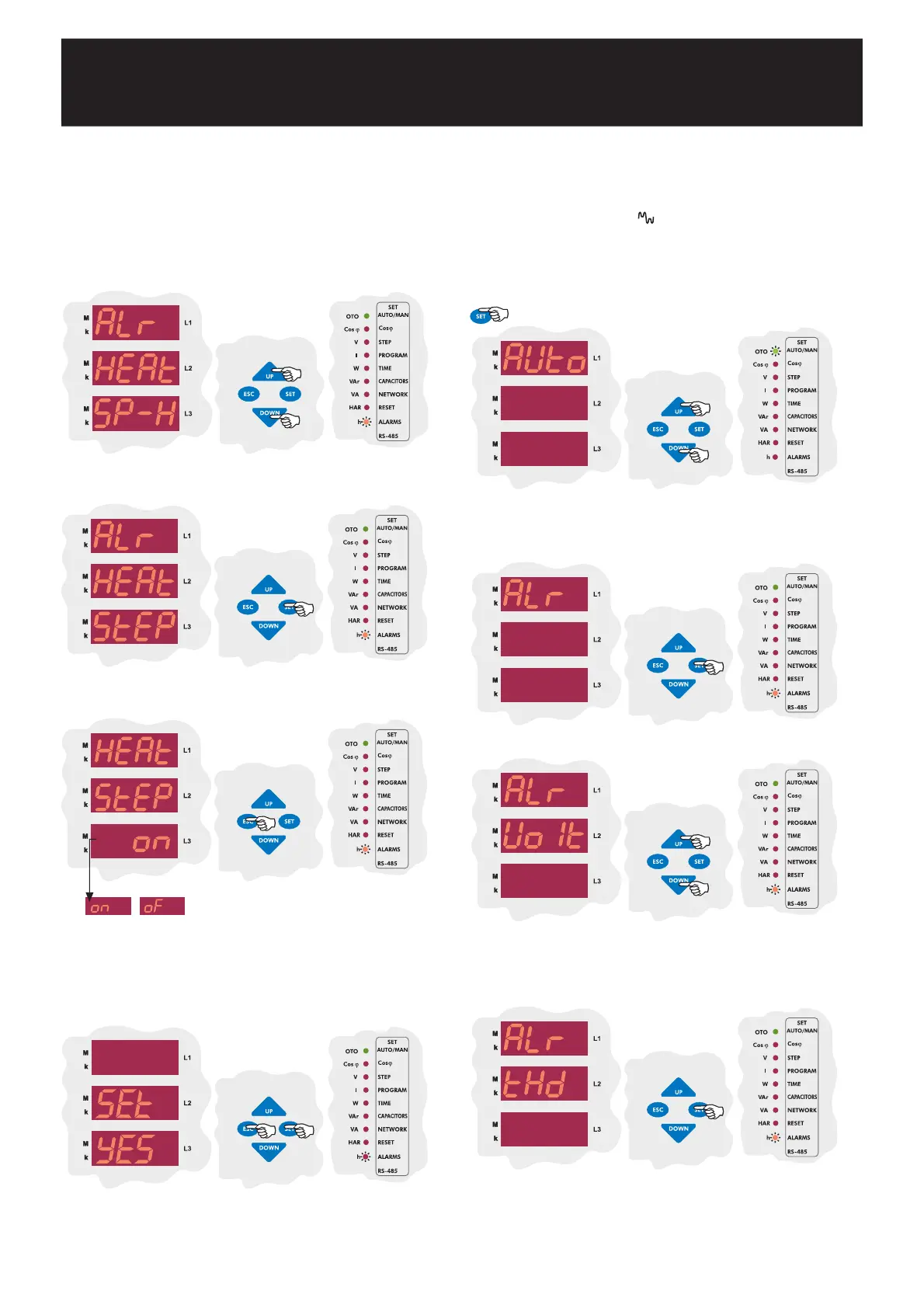 Press SET button for alarm (ALr) settings.
