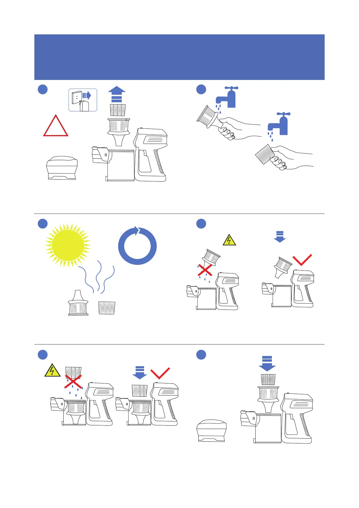 NOTE: Wash the filter with cold water every 2 weeks. Ensure the filters are