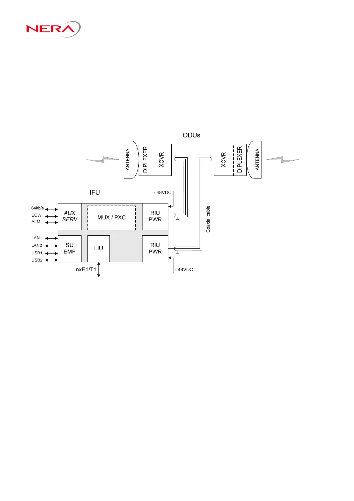 protected antenna directions. The node performs digital x-connect of traffic at E1/T1 level between the