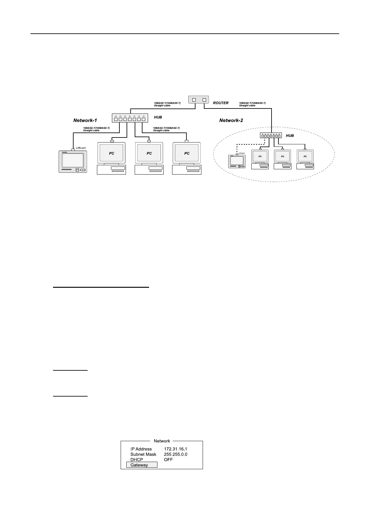 - Hub (When 100BASE-T PC is connected, the switching hub is required.)