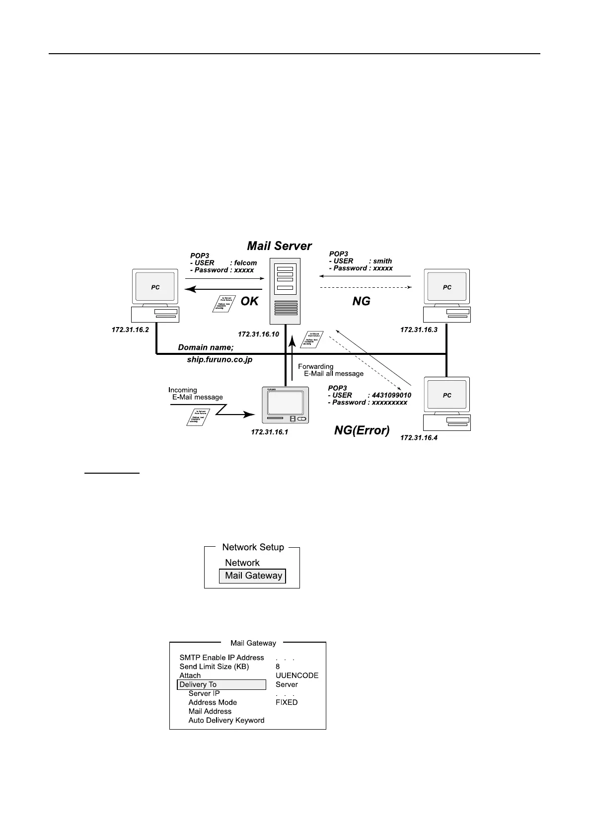When a mail server is connected to the LAN, the received mail can be transferred to