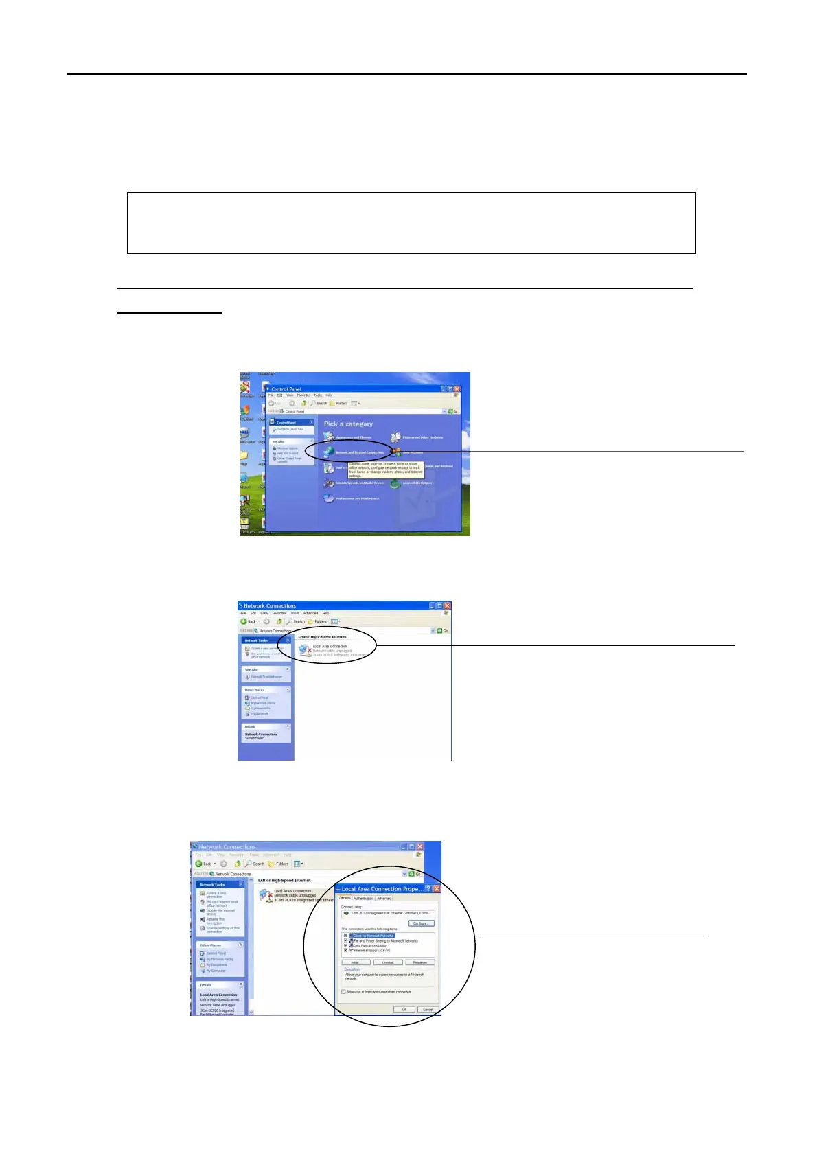 For example; To setup the PC for network connection (single PC and