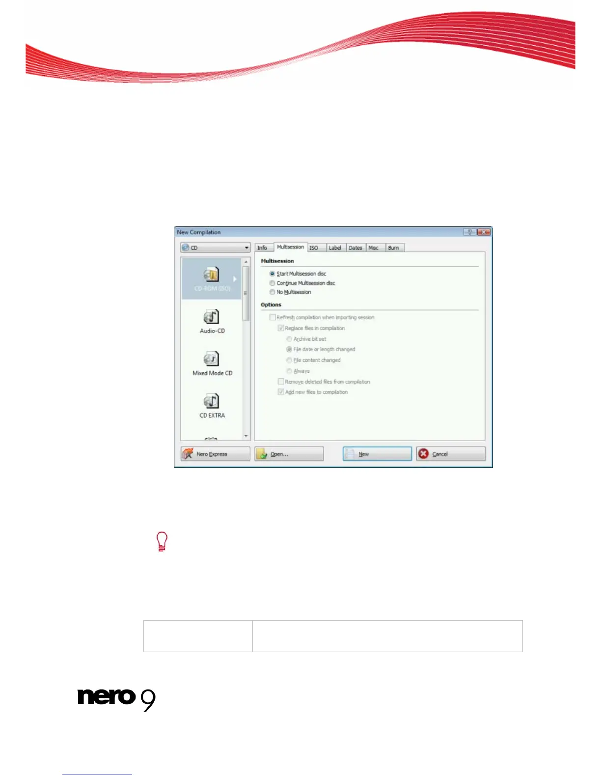 difference is the tabs that are available. When you start Nero Burning ROM, the New Com-