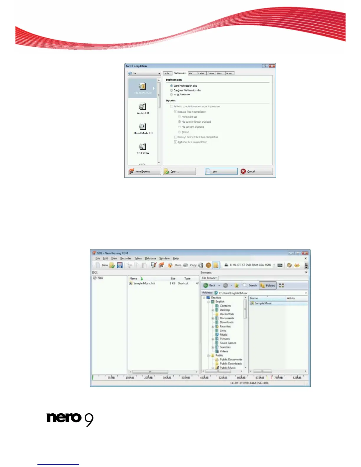 2. Select the desired compilation type for a data disc from the selection list (CD/DVD-ROM