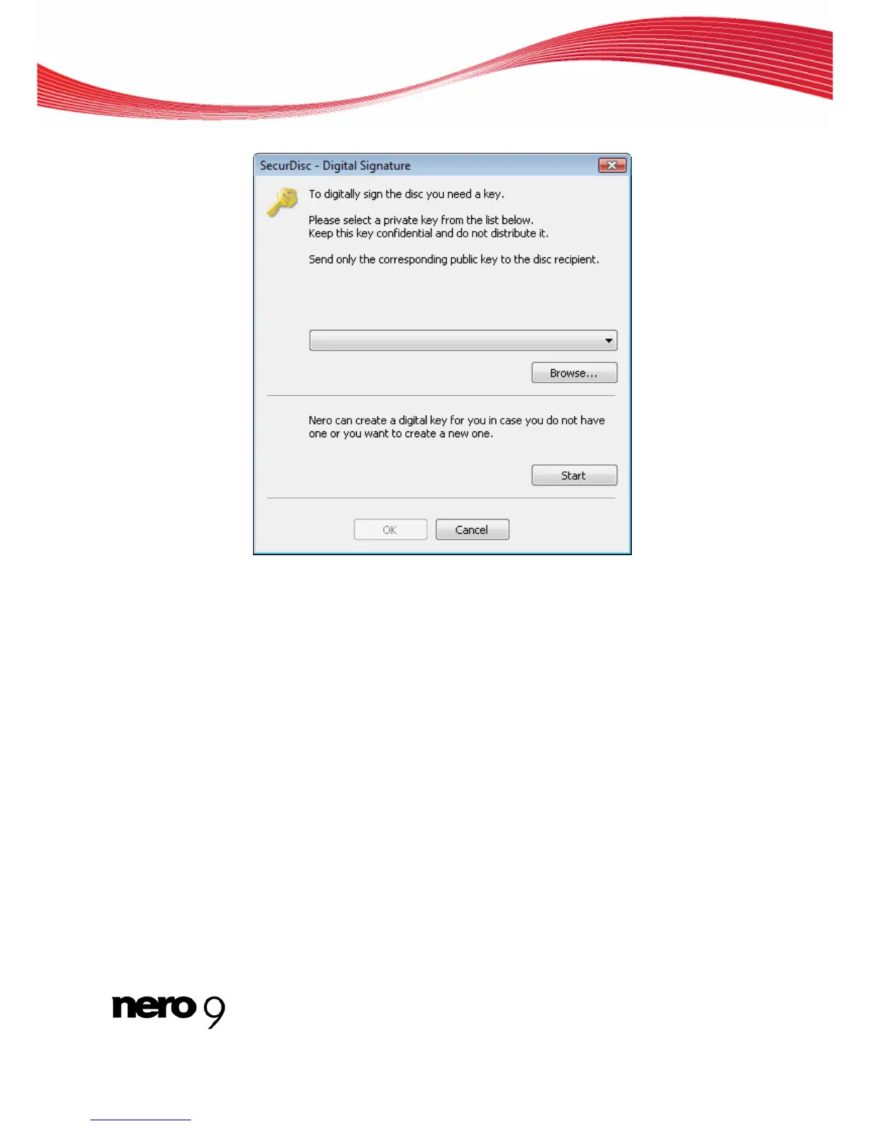 The SecurDisc – Digital Signature window is opened again and the selected key