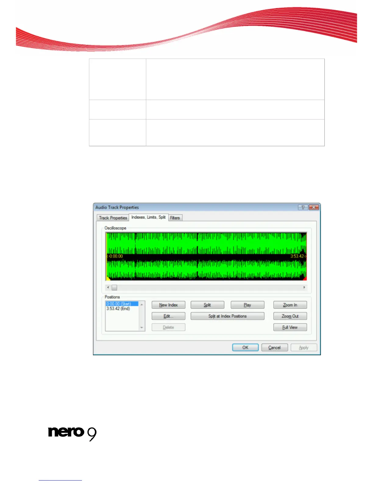 On the Indexes, Limits, Split tab you can set and delete indexes and split audio files to cre-