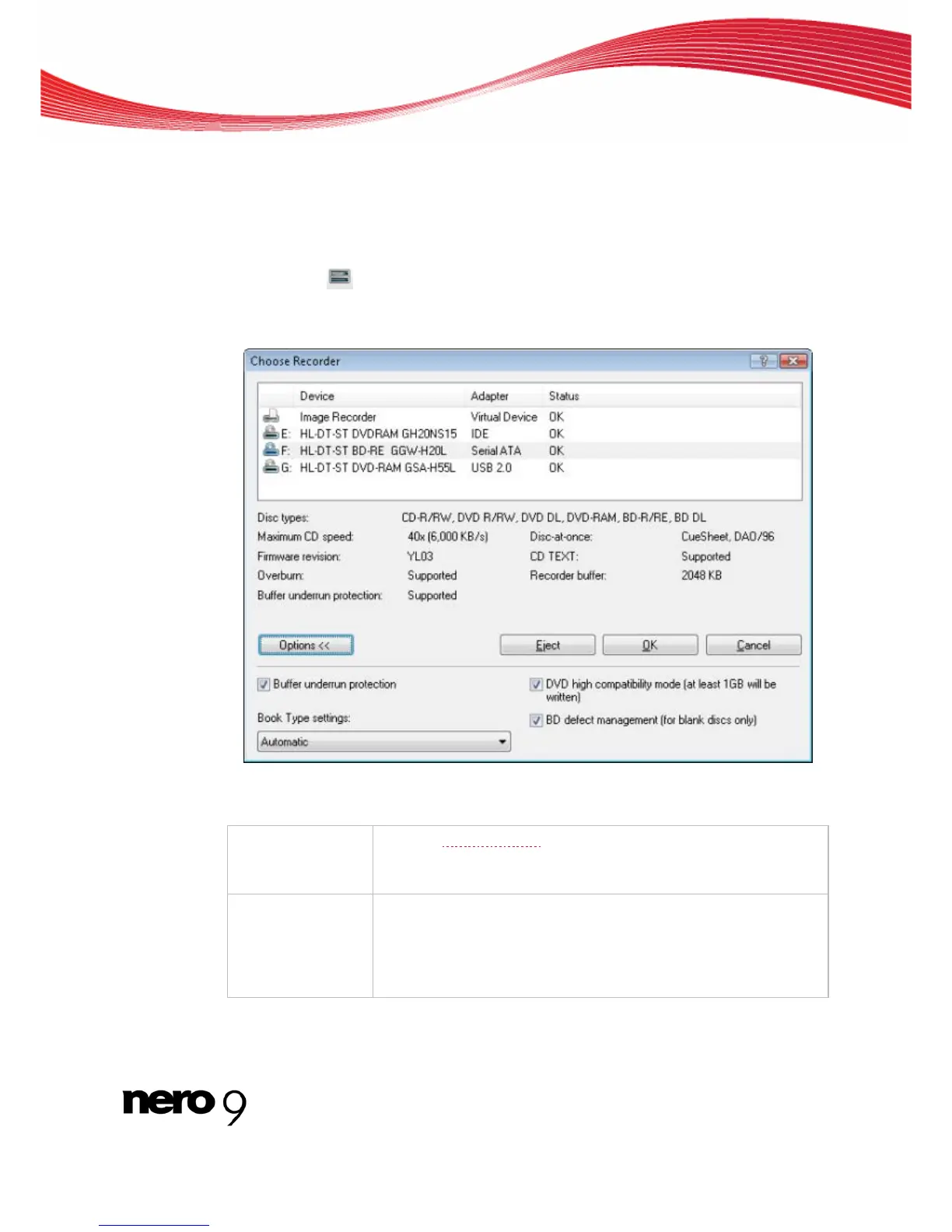 In the Choose Recorder window you can select a recorder for burning. You can open the