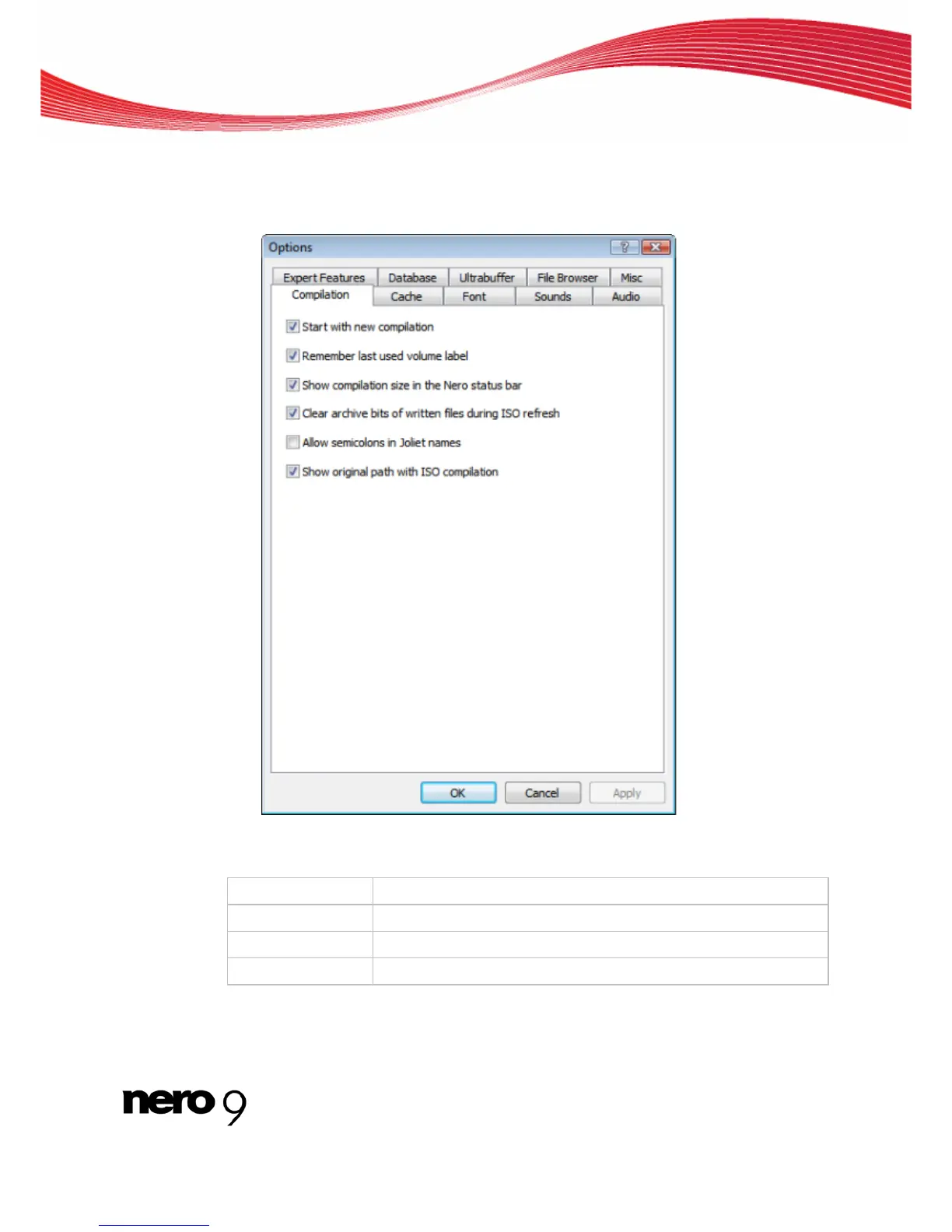 You can define options for working with Nero Burning ROM in the Options window.
