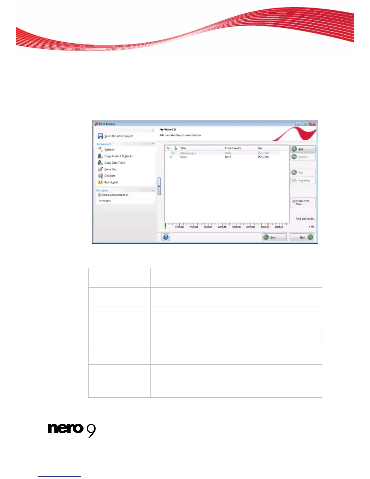 You can access the Nero Express compilation screens by selecting the compilation method