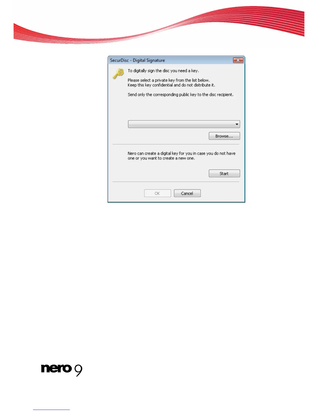 The SecurDisc – Digital Signature dialog box opens and the selected key is dis-