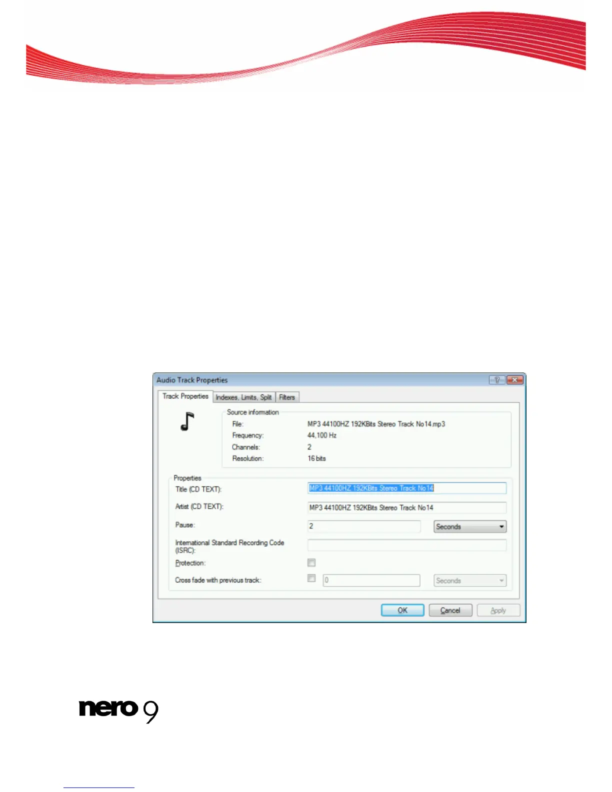 On the Track Properties tab you will find basic information on the selected file in the Sour-