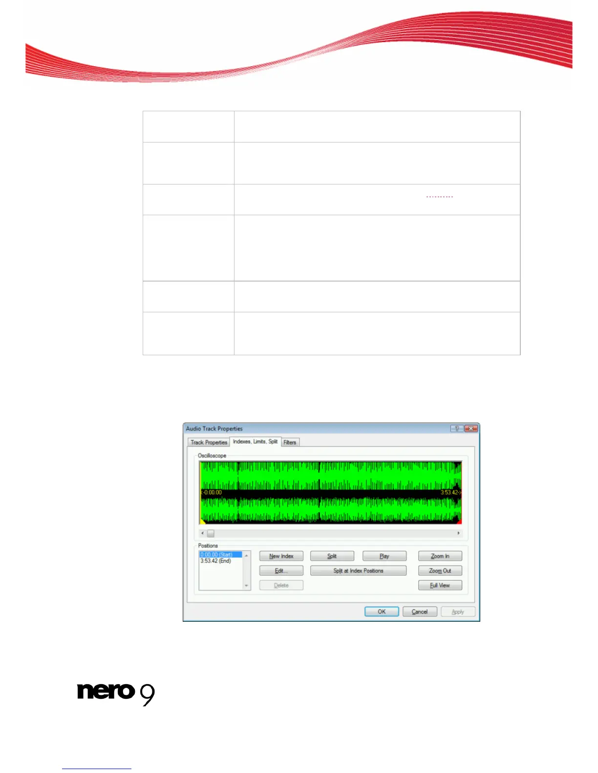 On the Indexes, Limits, Split tab you can set and delete indexes and split audio files to cre-