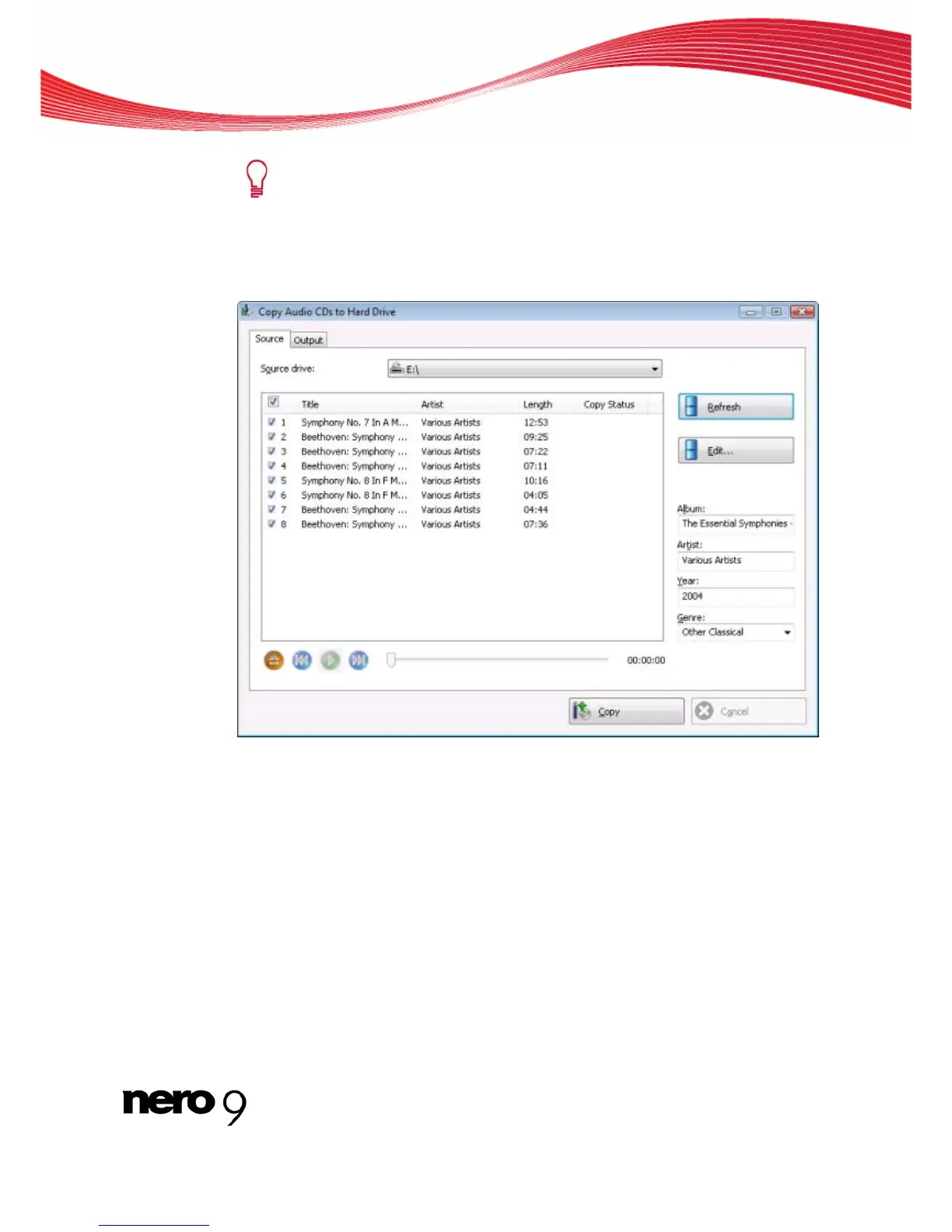 The Copy Audio CDs to Hard Drive window opens.