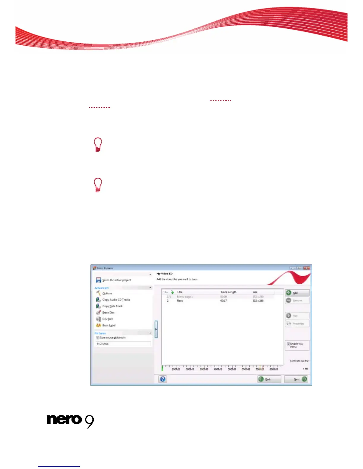 Using Nero Express you can compile Video CDs (MPEG-1 format) and/or Super Video CDs