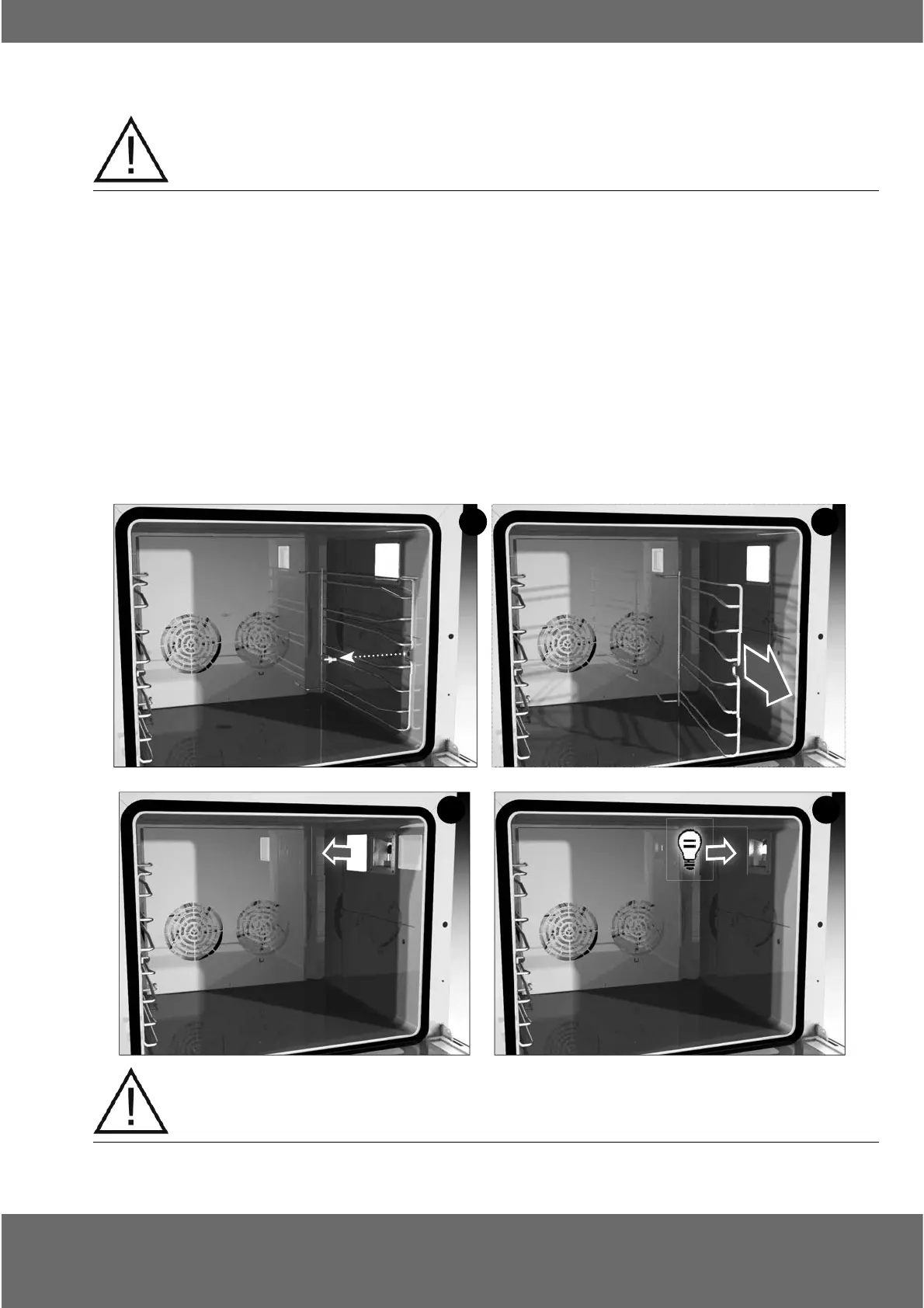 Starten Sie den Ofen nicht, ohne die Lampenabdeckung wieder positioniert zu haben!