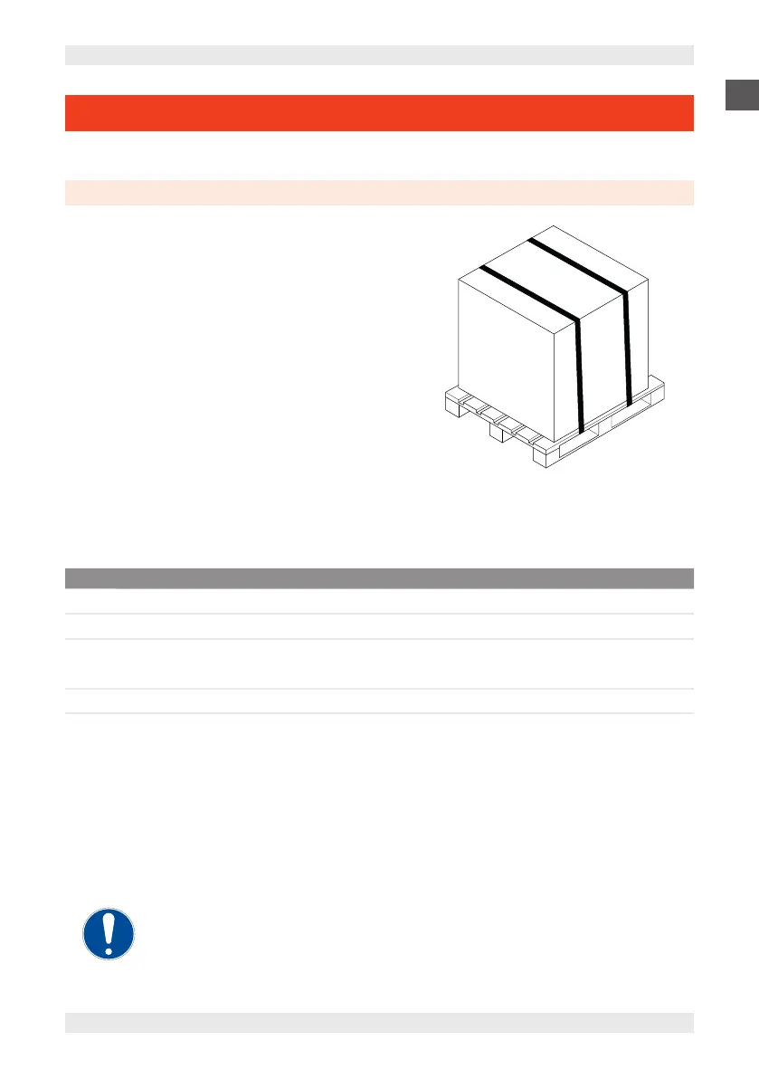 The device is delivered on a pallet and packaged with a strapped