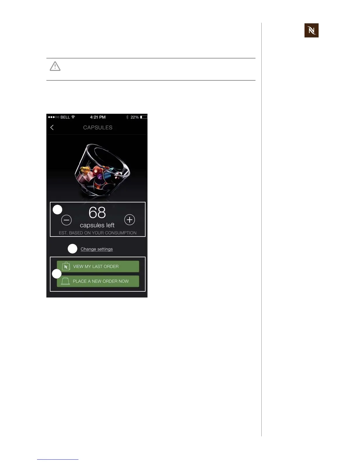 Touch capsule icon at the bottom of the machine page to display this submenu: