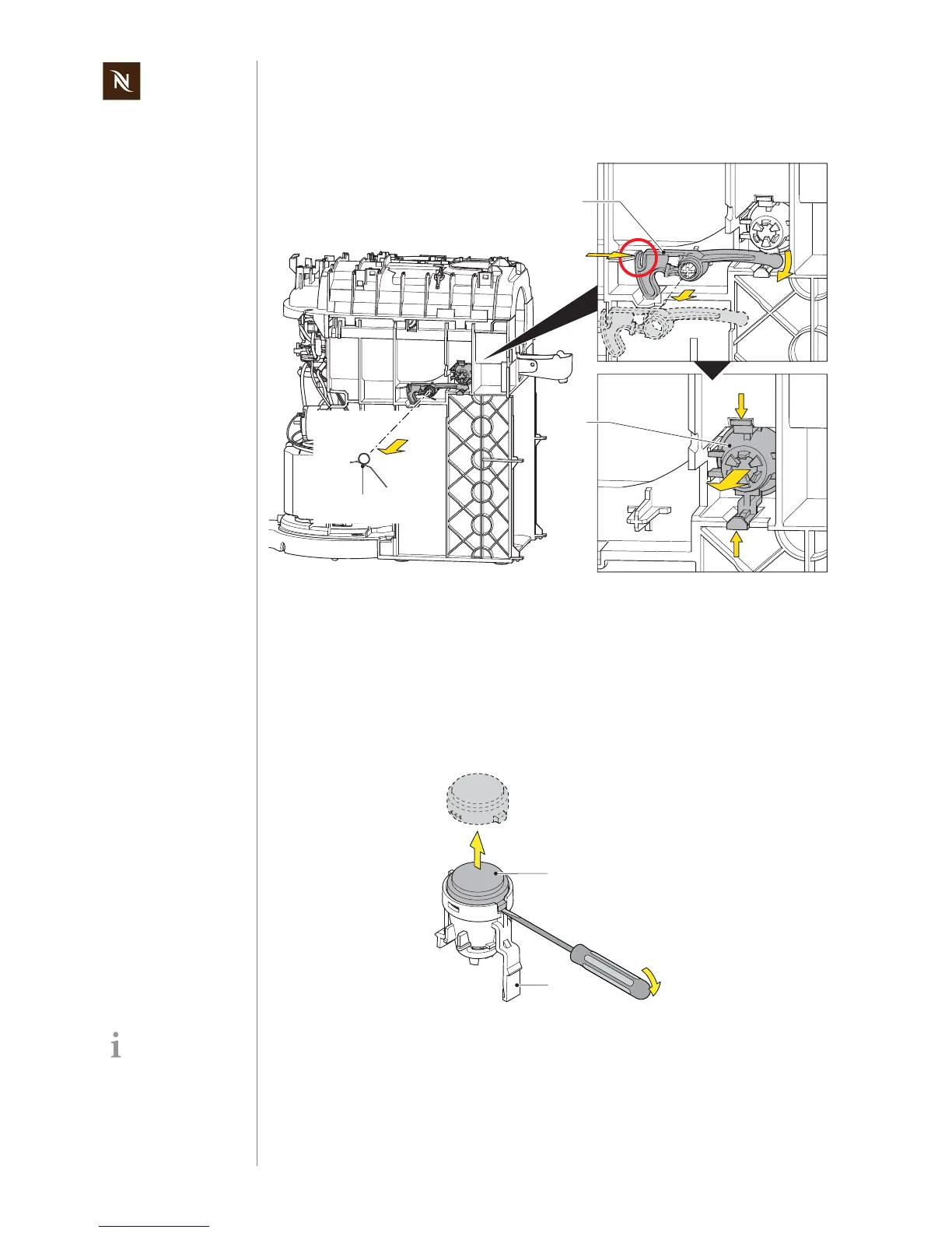 • Remove second light guide rack (63) and lens (62) on opposite side of coffee