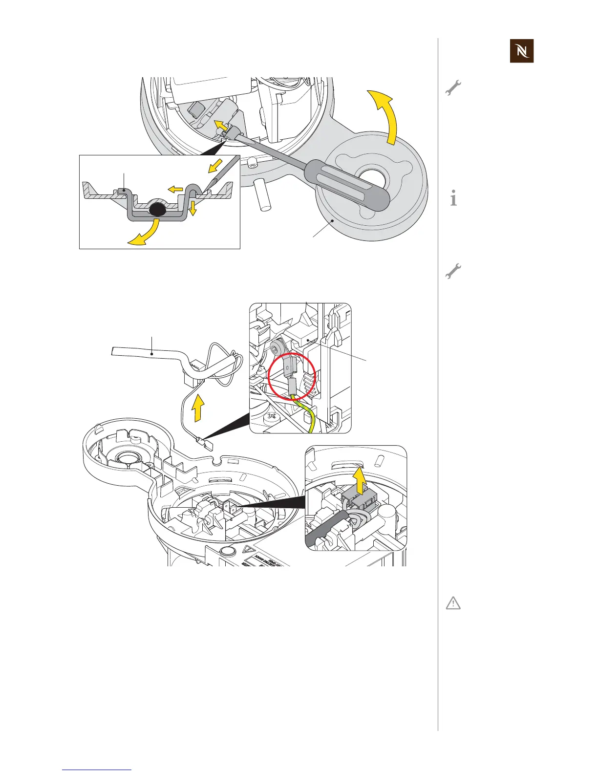 • Unplug both insulated angled Faston receptacles with the help of a screwdriver