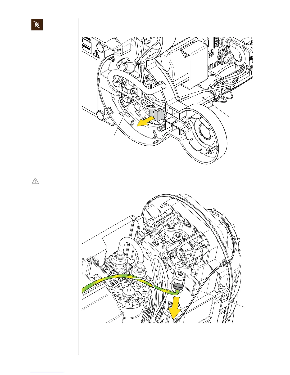 Unplug Faston receptacle of protective earth cable from thermoblock (35).