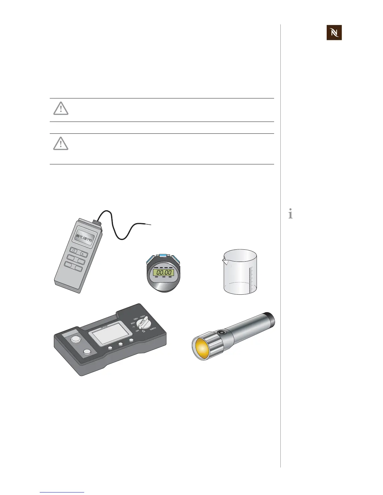 Nescafe D75 - Function Tests; Safety Instructions for Tests; Required Equipment for Tests