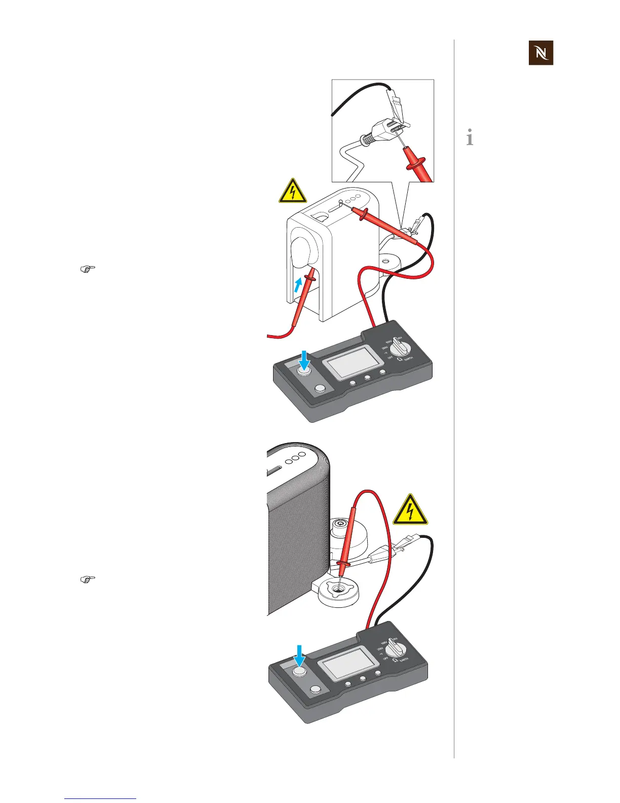 13) Touch ground pin of power plug with