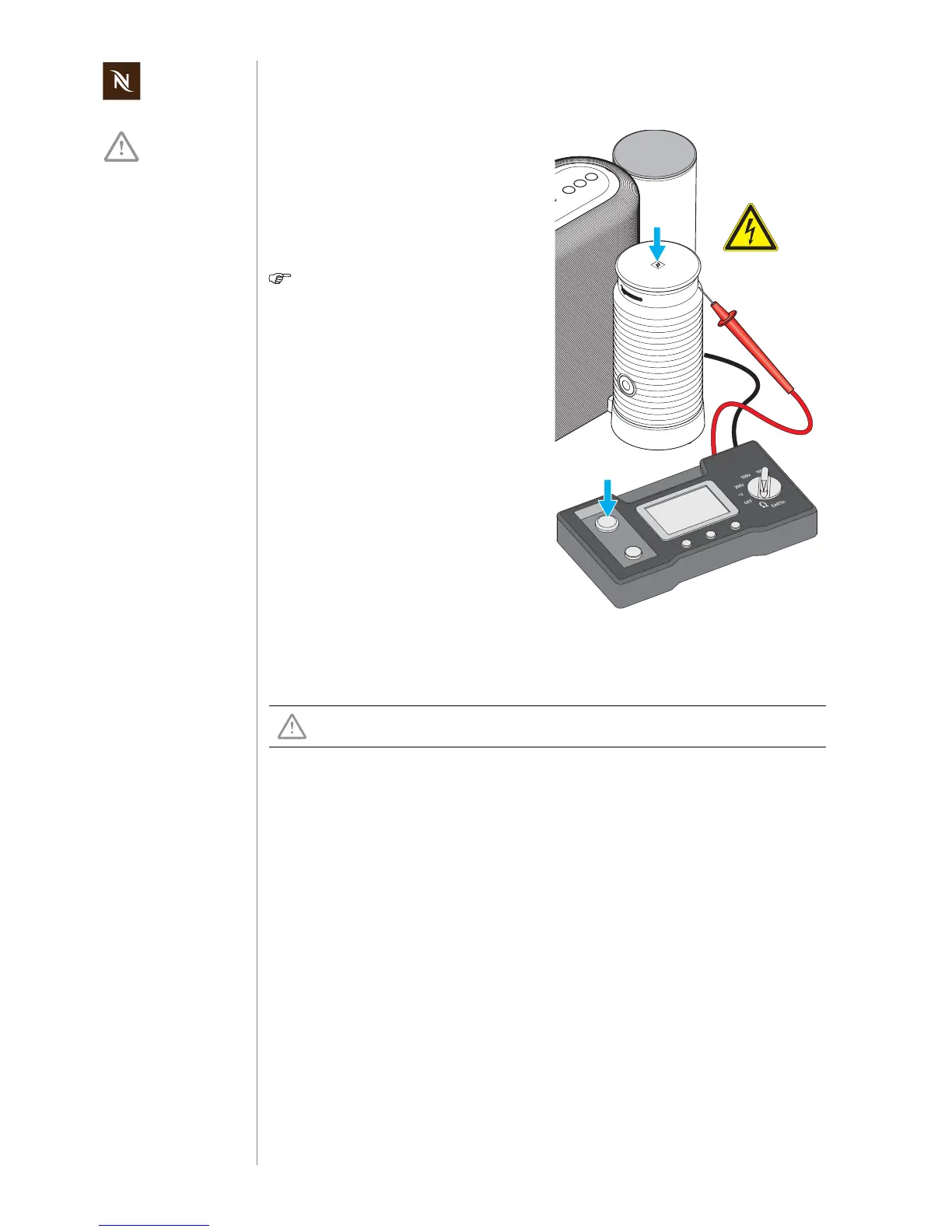 In case of doubt an insulation test on the milk frother alone can be carried out: