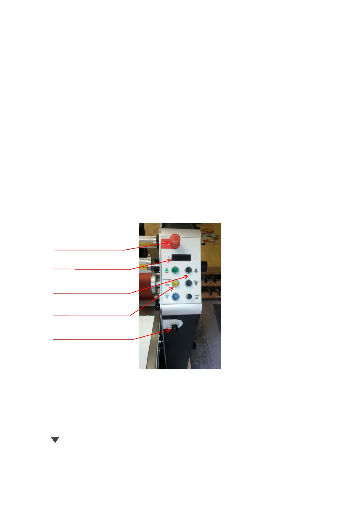 down – the top roller moves down. The button must be held depressed. When released, the