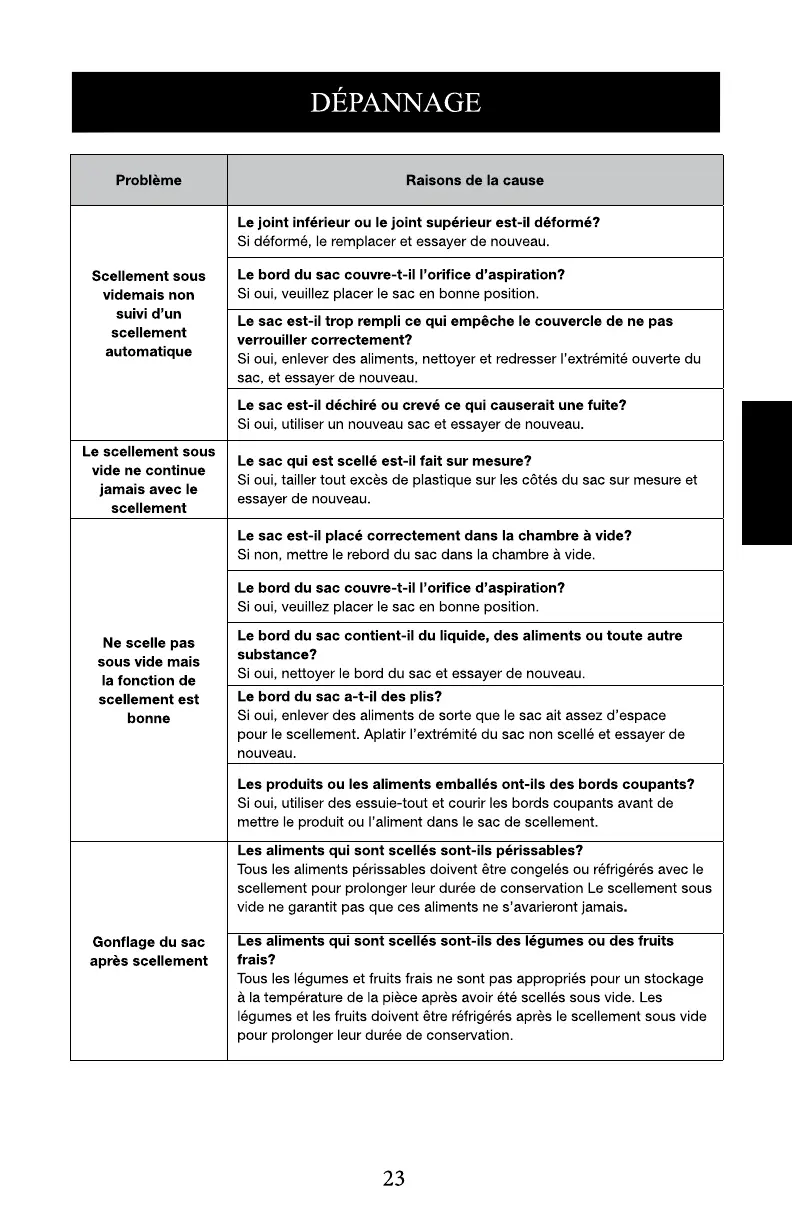 Si oui, utiliser un nouveau sac et essayer de nouveau.