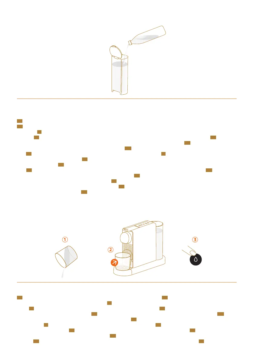 9. Empty container, place it back and press hot water buon