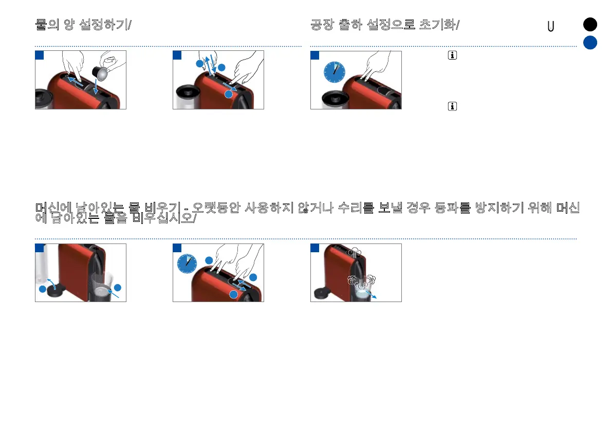 머신에 남아있는 물 비우기 - 오랫동안 사용하지 않거나 수리를 보낼 경우 동파를 방지하기 위해 머신
