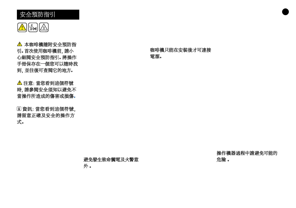 本咖啡機隨附安全預防指