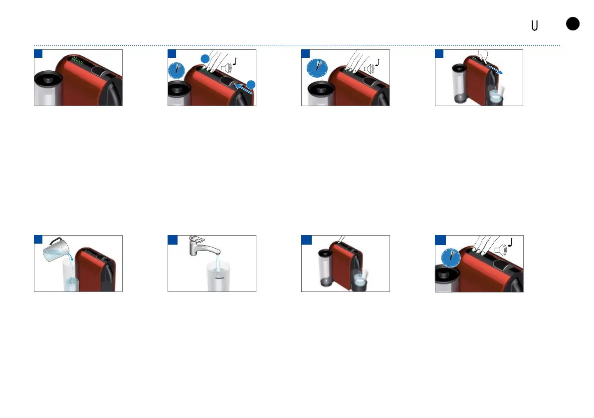同按下所有咖啡按鈕多於3秒。 咖