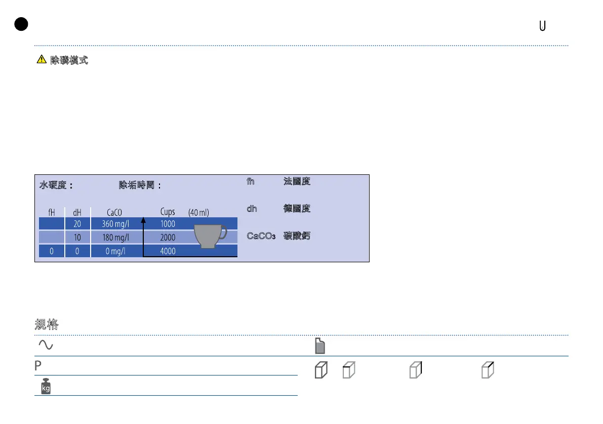 磷,以免損害閣下之咖啡機。以下是除磷次數表,根據不同水硬度所需進行除磷,以確保咖啡機在最佳狀態下運作。如閣下對