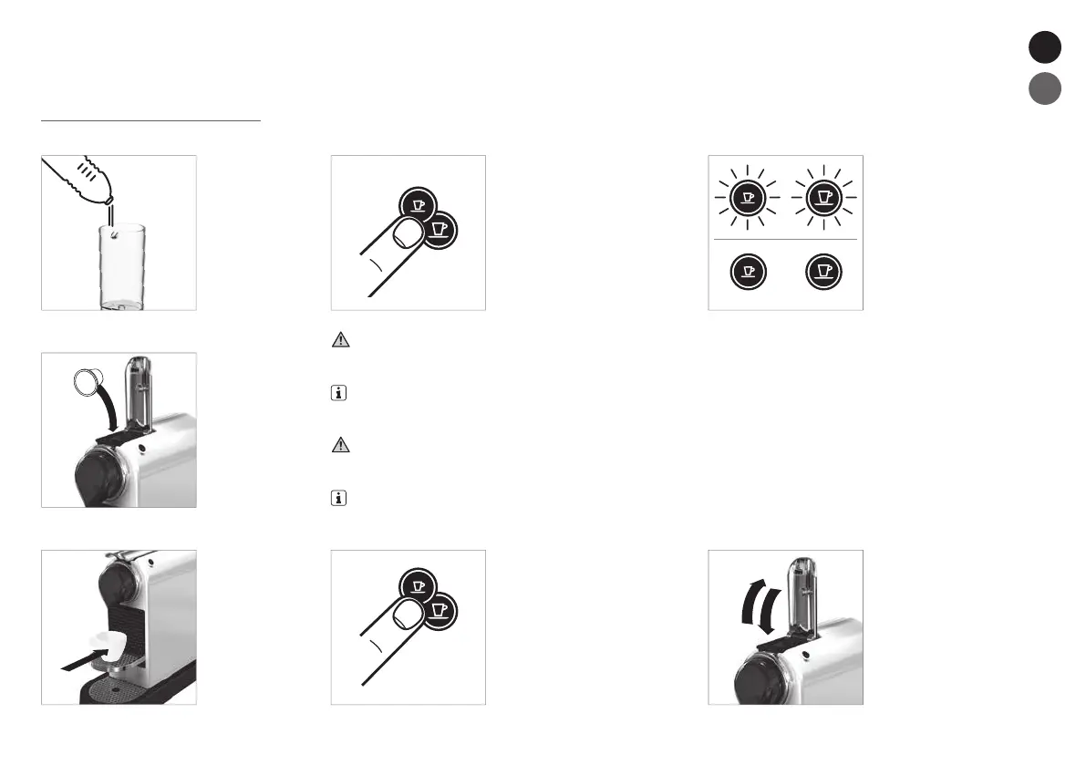 POZNÁMKA: již během nahřívání můžete stisknout tlačítko na přípravu kávy. Káva poteče po nahřátí.