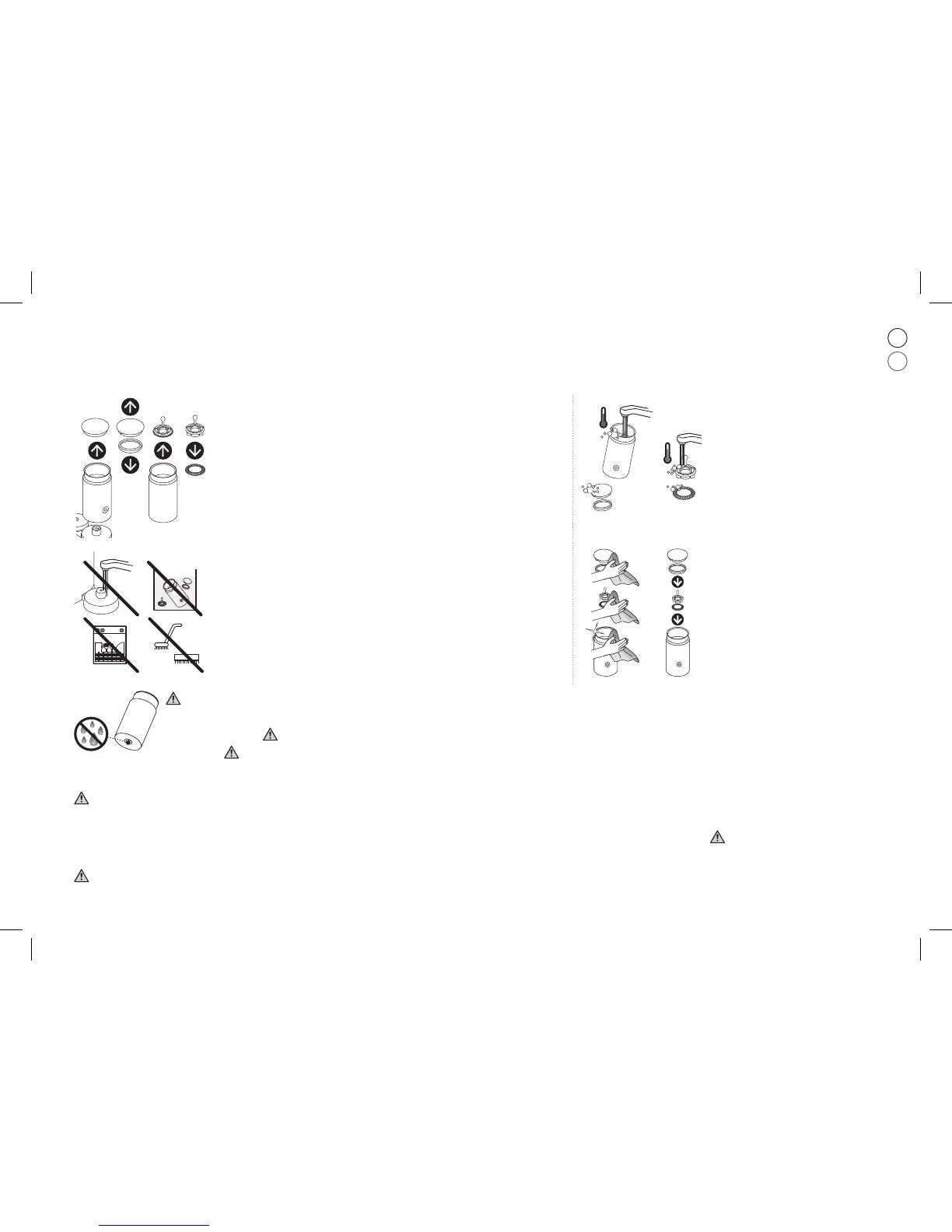 ❸ Nu puneţi recipientul în maşina de spălat vase şi nu scufundaţi în apă pentru a curăţa,