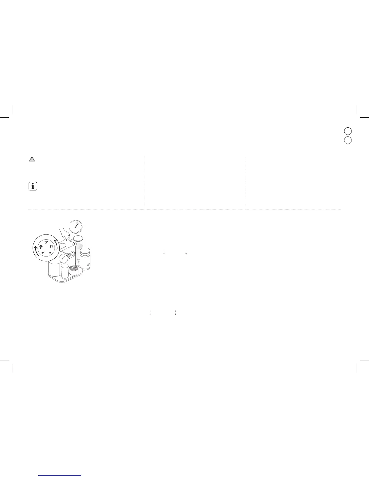 - Tryck på knappen för bryggning i 6 sekunder – båda vreden blinkar för att